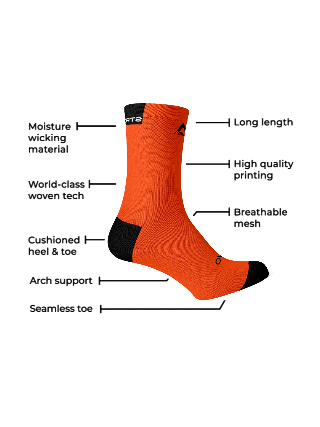Our Socks are designed with a Y-heel for added heel support and anti-slip protection. The padded heel and toe provide extra cushioning, while the seamless toe helps prevent blisters. Crafted from soft, durable synthetic fibres, they feature breathable, moisture-wicking material (Polylon36) to keep you cool and dry on even the most strenuous activities. With targeted arch support, these socks combine performance and style for your best runs yet.